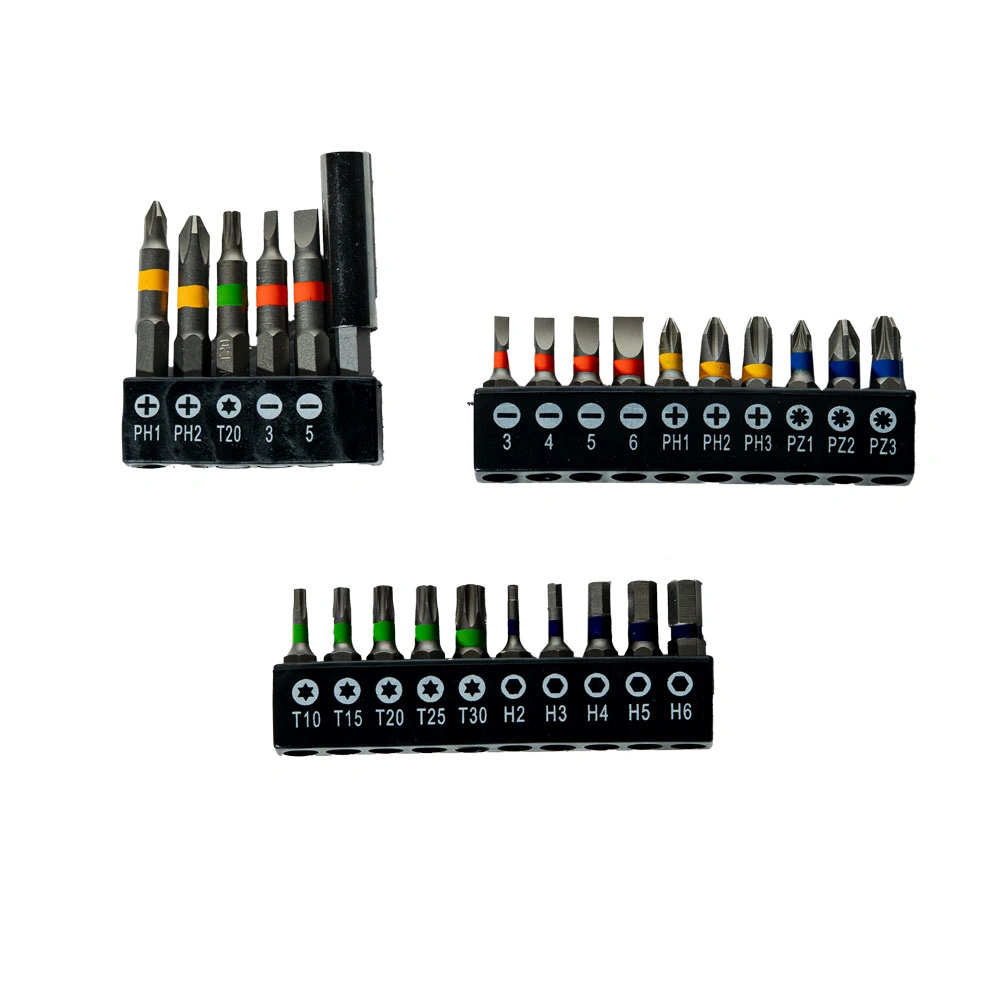 El set incluye un maletín rígido con 25 puntas de uso frecuente, ideal para bricolaje y armado de muebles: