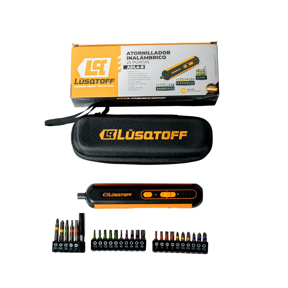 Atornillador Inalámbrico 4V con Maletín y 25 Puntas Lusqtoff ADL4-8