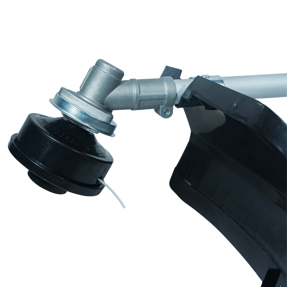 El sistema de arranque suave reduce el golpe de partida, protegiendo el motor y prolongando la vida útil de la herramienta. El encendido de doble gatillo de seguridad evita activaciones accidentales, mientras que la empuñadura auxiliar de doble posición permite adaptar el agarre a cada tipo de tarea. El protector anti-impacto resguarda al usuario de piedras y fragmentos proyectados durante el corte.