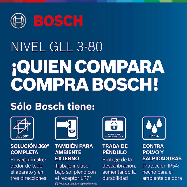 En resumen, el Bosch GLL 3-80 es un nivelador láser profesional, compacto y confiable. Ideal para tareas de alineación exigentes, combina precisión, resistencia y facilidad de uso en un solo equipo.