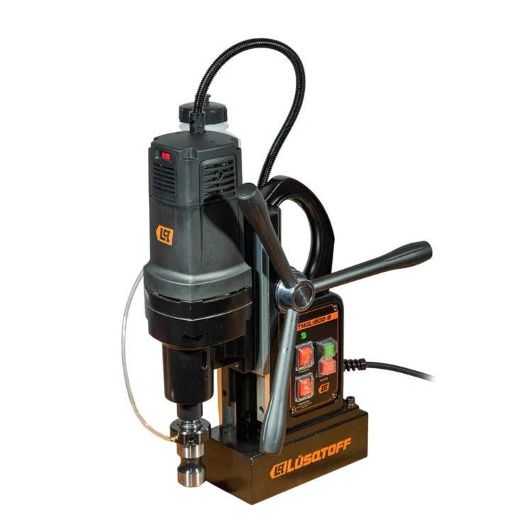 El taladro de base magnética 1800W 32mm Lusqtoff TMGL1800-9 Black Series es una herramienta especializada para la metalurgia y la construcción de estructuras: su base magnética se adhiere a superficies de acero, permitiendo perforar en cualquier posición — horizontal, vertical o invertido — sin que el operario tenga que sostener el equipo. Consultá la ficha oficial en lusqtoff.com.ar.