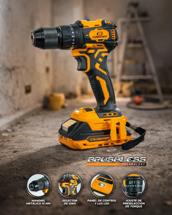Técnicos de mantenimiento, instaladores y obras en altura o zonas sin energía en Neuquén y la Patagonia que necesitan un taladro de impacto de 13mm con batería y el respaldo de garantía oficial Lusqtoff. Además, podés ver toda la línea en taladros en Neuquén.