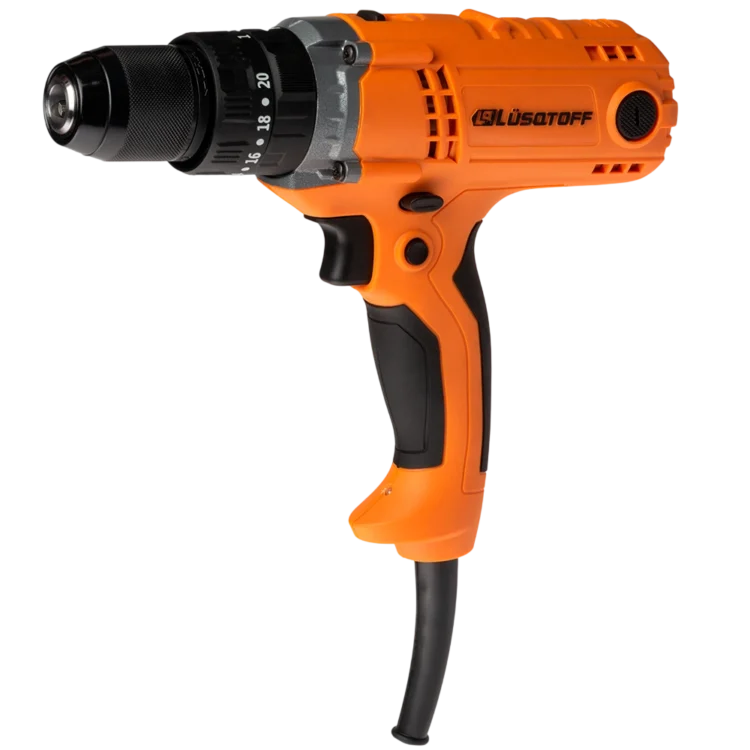 Con 75 Nm de torque, es el taladro eléctrico de entrada más potente de la línea Lusqtoff en mandril de 13 mm. El LED ilumina directamente el punto de trabajo, reduciendo errores en superficies oscuras. El rango de velocidad de 0-1800 RPM lo hace apto tanto para atornillar como para perforar en mampostería con percutor.