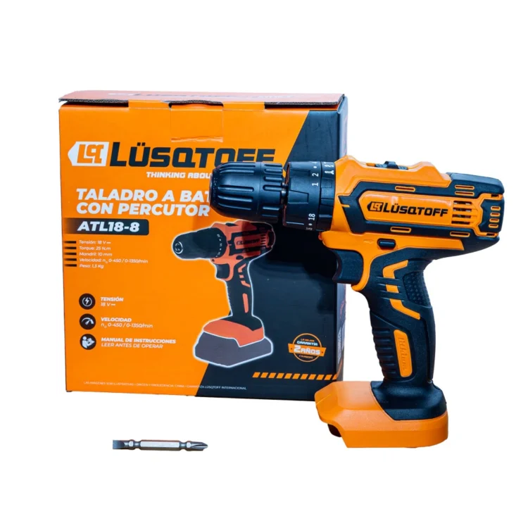 El taladro percutor inalámbrico 18V sin batería Lusqtoff ATL18-8 es la versión bare tool (solo herramienta) de la línea 18V. En talleres de Neuquén y la Patagonia, es la forma más económica de sumar una herramienta percutora inalámbrica cuando ya se cuenta con baterías y cargador de la plataforma Lusqtoff 18V. Consultá la ficha oficial en lusqtoff.com.ar.